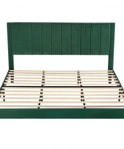 • King size Modern Green Velvet Upholstered Platform Bed with Headboard
