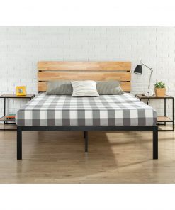 King size Modern Metal Platform Bed Frame with Wood Headboard and Slats