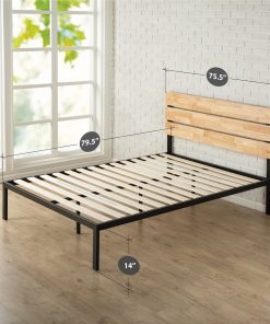 Update your bedroom with this King size Modern Metal Platform Bed Frame with Wood Headboard and Slats. Featuring a casually styled headboard and low profile metal frame this platform bed offers strong, durable wood slat support for your spring, memory foam, latex, or hybrid mattress. Ships in one carton for easy assembly. No box spring needed.