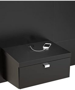 This King size Floating Headboard with Nightstands in Black with nightstands maximizes your available floor space with it’s elevated, off the floor design. With a focus on simplicity and functional storage, this unit creates a modern and sleek bedroom. Two built-in nightstands extend from the headboard featuring drawers for out-of-site storage and a surface for your reading lamp and favorite books. To maintain its clean lines, both nightstands feature hidden wire management for lamp cords, alarm clock cords or phone chargers. Installing the Floating Headboard at any height is simple, thanks to its innovative hanging rail mounting system. Its gravity defying design makes it the perfect companion to platform storage bed, leaving open floor space for easy access to the storage drawers below. Proudly manufactured in North America using CARB-compliant, laminated composite wood. Ships Ready to Assemble with an instruction booklet for easy assembly