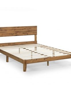 • King size Wooden Platform Bed Frame with Headboard in Medium Brown Finish