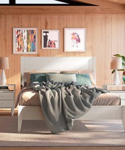 Bring the lightweight, organic feel of mid-century modern design to your bedroom with King Size Rustic White Mid Century Slatted Platform Bed. It was designed in-house adhering to the standards of simplicity and functionality characteristic of the great architects of the post-World War II period. The simple details on the headboard and legs of this bed won’t stand out at first, but will complement many modern or contemporary design styles; and a closer look will reveal an honestly high-quality finish.