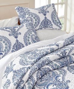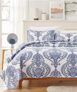Elevate your bedroom with this versatile King Size Soft Microfiber Reversible Blue/White Baroque Design Quilt Set. This supremely soft quilt with 2 matching shams features a classic baroque design in shades of blue to add relaxed elegance to your bedroom. Crafted of ultra-soft premium microfiber and filled with polyester polyfill, this breathable, smooth quilt is suitable for all seasons. Best of all, this stylish set can be machine washed and is fade resistant for everyday use.