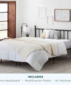 This King size Traditional Farmhouse Headboard in Matte Black Metal Finish helps complete your bedroom ensemble, with its sleek shape and traditional design. It’s made from metal in a black matte finish, and it has open vertical slats and decorative finials that fit well within your space no matter the style of your room or its color palette. This headboard is 40″ tall when measured with both legs. Plus, you can easily mount it to your bed frame all hardware and plates included.