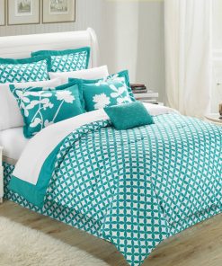 King size Turquoise 7-Piece Floral Bed in a Bag Comforter Set