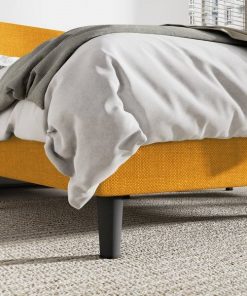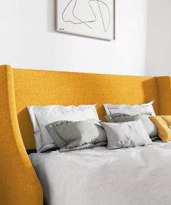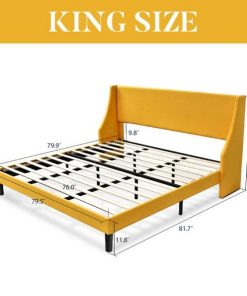 King Size Upholstered Linen Blend Headboard Wingback Platform Bed in Yellow