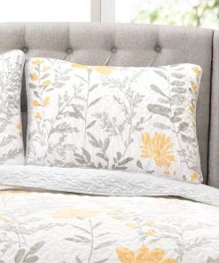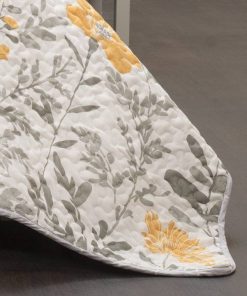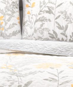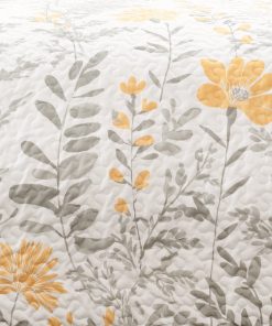 King size Yellow Grey Floral Light Thin Cotton Polyester Blend Quilt Set