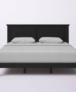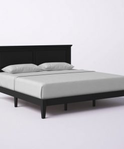 This King Size Retro Solid Oak Wooden Platform Bed in Black with prominent headboard is a must have for any bedroom! Inset panels and retro molding that adds refined elegance to any bedroom or guest room. It is crafted from solid oak, a naturally hard and durable wood. Platform bed sits on straight and slightly tapered legs that raise this bed almost 8 inches off the floor. This system of slats eliminates the need for a box spring and works best with any standard mattress (recommended 10 inches of thickness). Assembly is required.