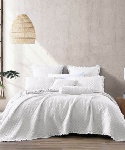 King White Farmhouse Microfiber Diamond Quilted Bedspread Set with Frayed Edges