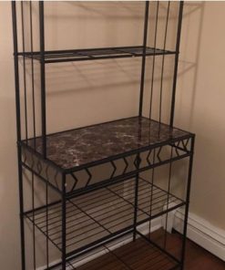 This Kitchen Bakers Rack with Marble top has a black metal finish and is a great addition to your home decor. Comes in Black finish with metal and marble top. Store your kitchen items in a more organized way. Measures 67.25 inches high x 30.25 inches wide x 16 inches deep. Assembly required.