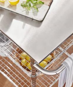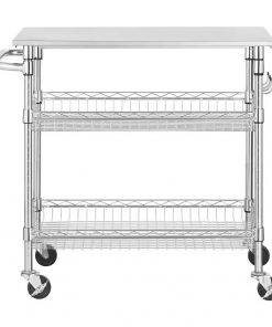 This Kitchen Island Cart with Stainless Steel Top and 2 Bottom Storage Shelves would be a great addition to your home. It has a solid pattern, the handle is made of stainless steel and a modern style.