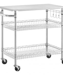 Kitchen Island Cart with Stainless Steel Top and 2 Bottom Storage Shelves