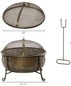Bring your patio warmth and ambiance that your family and friends are sure to flock to with our Large Wood Burning Fire Pit Cauldron Style Steel Bowl w/ BBQ Grill, Log Poker, and Mesh Screen Lid! It can be used not only for heating, but also for grilling with a barbecue mesh. Constructed with durable painted steel, this pit can withstand high temperature up to 752℉. A fire poker included for protecting your family members from being scalded. Stylish and practical, it is a must-have as a reliable way to enjoy a real outdoor wood burning fire.