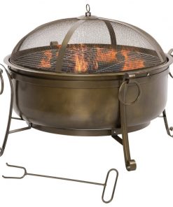 Bring your patio warmth and ambiance that your family and friends are sure to flock to with our Large Wood Burning Fire Pit Cauldron Style Steel Bowl w/ BBQ Grill, Log Poker, and Mesh Screen Lid! It can be used not only for heating, but also for grilling with a barbecue mesh. Constructed with durable painted steel, this pit can withstand high temperature up to 752℉. A fire poker included for protecting your family members from being scalded. Stylish and practical, it is a must-have as a reliable way to enjoy a real outdoor wood burning fire.