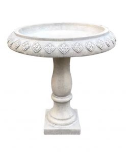 This Lightweight Weathered Concrete Fiberglass Stone Birdbath – 22-inch Diameter with a flower encased in a diamond pattern that is engraved along the rim of the bowl is a timeless piece that is pleasing to the eye and that will draw attention to your garden. A shallow and wide bowl assures that multiple small birds can drink and bathe safely at the same time. Bird bath holding water or feed can help to attract birds to stay in your yard, bird will help to aerate soil for more water and nutrients and beautify your garden lawn. Made of concrete and weather-resistant fiberglass that have all the advantages of these materials, such as strength, durability, weather and damage resistance, and long-lasting color.