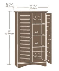 - Overall Dimensions: 61″ H x 35.5″ W x 16.75″ D