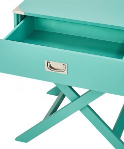 • Marine Green Turquoise 1-Drawer Modern End Table Nightstand