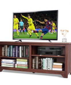 This Medium Brown Wood TV Stand Entertainment Center for up to 60-inch TV brings a dramatic contemporary styling to your home with its elegant finish. The top can support TVs up to 60 inches, and the adjustable shelves help you storage necessary media or gaming devices. This TV stand is a piece of furniture for your home. With a clean-edged top, rectangular legs, the distinctive TV stand creates a warm and charming atmosphere for your home or office. This TV stand is designed to blend into a variety of living and family room settings. With its casual contemporary style, this exquisite collection is a relaxed look that fits anywhere. If you are looking for a beautiful TV stand, just buy this one now!