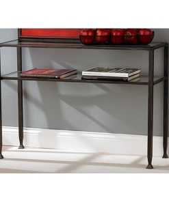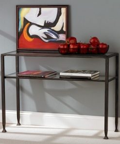 This Metal Glass Top Sofa Table Occasional Console Table with Shelf is an elegant sofa table, which is sure to brighten your existing interiors. The graceful design and purposeful features of this console will ensure that you add lots of style and utility to your room. Best placed against a wall, the table would look good near your entryway as well. Top it with some of your favorite décor items to add a hint of personal touch. The table has metal as its base, which makes it strong and highly durable. The frame of this table is made of a 5mm rectangular metal tube, while the top is made of clear tempered glass. The table has a distressed black finish, which makes it suitable with every interior décor. It stands on four legs for a sturdy base and firm hold. The table also has a shelf at the top that doubles as a storage space for utilities. Add a beautiful frame or a lampshade to make the table look attractive. The table is 30″ high, which allows it to comfortably cover your sofa. The table requires assembly and is easy to maintain. It has a capacity of 25lbs., so be sure to load it with light objects. Wipe it occasionally with a dry cloth, to keep away dust and grime.