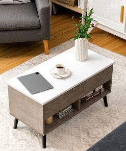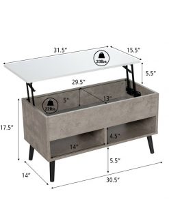 This sturdy multi purpose Mid-Century Lift-Top Coffee Table Sofa Laptop Desk in Grey Wood White Top Finish is a great addition to any sitting space. The top of this modern coffee table can be lifted up, with the durable solid lifting mechanism inside. The lifting mechanism is made of iron, ensuring long-term use. The springs at 2 sides help you to lift the top up and lower down, the height can be fixed at 24 inches to meet your various needs. Under the top, this table hides a large space to store your daily objects. You can put books, magazines, remote controls, keeping them in reach and away from dust. Comes with 3 open shelves at the bottom can collect blankets, toys, or snacks, improving space utilization.