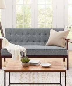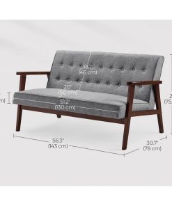 Enjoy the best in style and comfort with this Modern Wooden Loveseat Sofa w/ Armrests Button Tufted Grey! This Modern Wooden Loveseat Sofa w/ Armrests Button Tufted Beige boasts a quick and hassle-free setup. Putting it together is a breeze with clear instructions, labeled parts, and an included assembly kit. Featuring a 51.2″ wide seat, our loveseat sofa allows you to share the comfort with a loved one, turning your at-home movie night into a cozy, intimate experience. The rubberwood armrests add a touch of natural warmth, while the backrest buckle enhances the overall aesthetic. Filled with high-resilience foam, the seat and backrest can contour your body for the ultimate comfort, and take relaxation to a whole new level. Experience cloud-like softness with every sit.