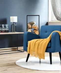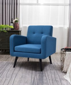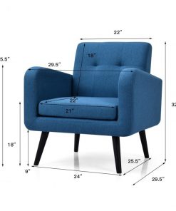 Sit back and relax in style with this Mid-Century Modern Linen Upholstered Accent Chair Wooden Legs – Blue. The seat and back of this chair is filled with a highly elastic sponge, that’s super soft and comfy. The breathable linen cover features a gentle texture and skin-friendly touch, offering a comfortable sitting experience. Made of a premium wooden frame, this accent chair combines excellent sturdiness and lasting durability. 4 rubberwood legs provide great support and stability, allowing the armchair to withstand up to 265 lbs. without wobbling.