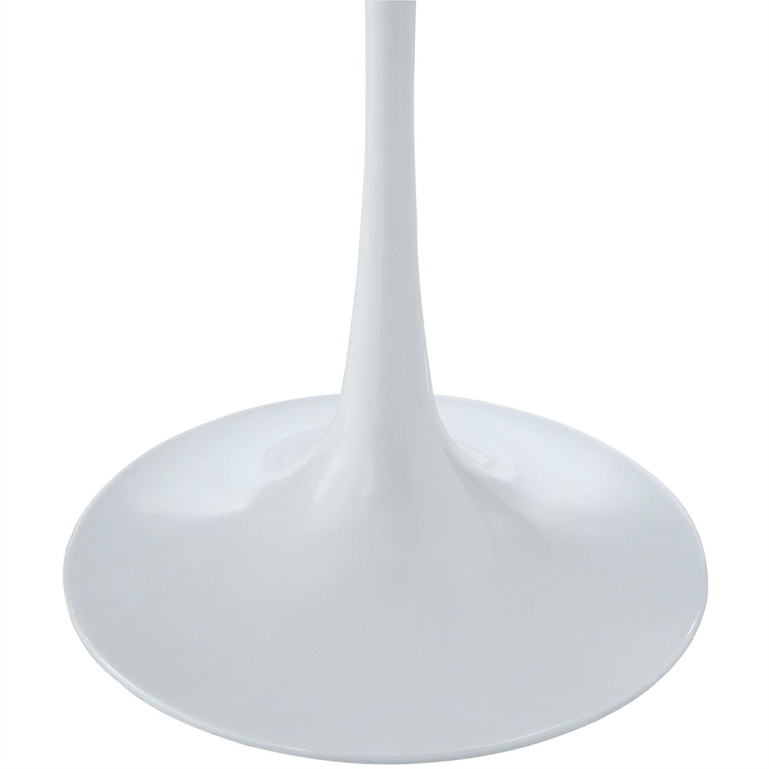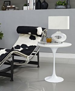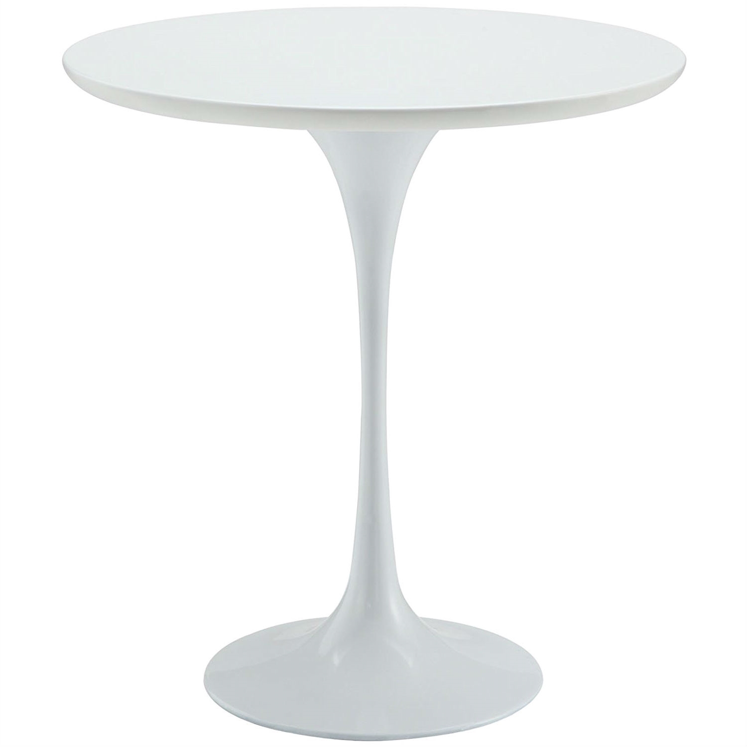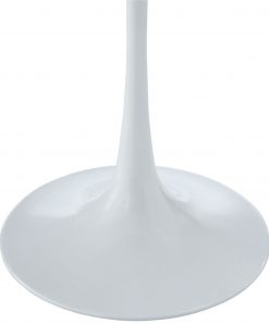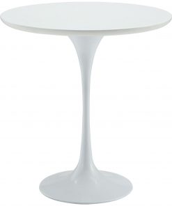 Reflecting a seamless organic shape and timeless form, this Mid Century Modern Classic 20-inch Round Side Dining Table in White has become a symbol of modernism for over the past 60 years. Before its release, homes were filled with clunky remnants of an industrial age long gone by. But in order to advance into the new world, homes first had to transition from the traditional square table, into a piece that connoted progress. The cast aluminum base and dimensions are true to the original specifications, while the tables circular top, and tapered base, are carefully lacquered with a chip resistant finish.