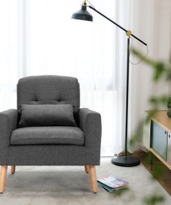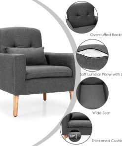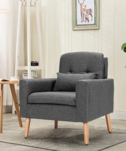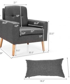 Relax in style and comfort with this Vintage Mid-Century Style Linen Living Room Accent Chair w/ Pillow – Grey. Has a wide seat and comfortable backrest. Breathable soft to touch linen fabric filled with a soft sponge and spring cushion makes relaxing easy. Made of durable pine and holds up to 330 lbs.