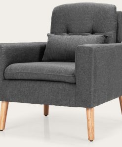 Relax in style and comfort with this Vintage Mid-Century Style Linen Living Room Accent Chair w/ Pillow – Grey. Has a wide seat and comfortable backrest. Breathable soft to touch linen fabric filled with a soft sponge and spring cushion makes relaxing easy. Made of durable pine and holds up to 330 lbs.