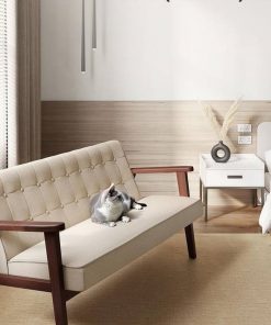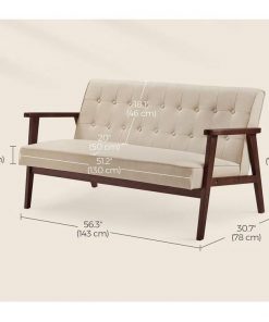 Enjoy the best in style and comfort with this Modern Wooden Loveseat Sofa w/ Armrests Button Tufted Beige! This Modern Wooden Loveseat Sofa w/ Armrests Button Tufted Beige boasts a quick and hassle-free setup. Putting it together is a breeze with clear instructions, labeled parts, and an included assembly kit. Featuring a 51.2″ wide seat, our loveseat sofa allows you to share the comfort with a loved one, turning your at-home movie night into a cozy, intimate experience. The rubberwood armrests add a touch of natural warmth, while the backrest buckle enhances the overall aesthetic. Filled with high-resilience foam, the seat and backrest can contour your body for the ultimate comfort, and take relaxation to a whole new level. Experience cloud-like softness with every sit.