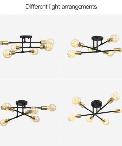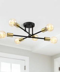 - Mid-Century Sputnik Style 6-Light Black Gold Ceiling Light – Semi Flush Mount