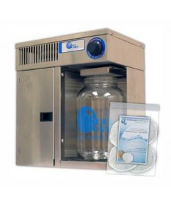 This Mini-Classic II Stainless Steel Counter Top Water Distiller is made of high quality stainless steel, to ensure durability, trust, dependability and absolute care. The boiling chamber is easily removable for periodic cleaning. The distilled water produced goes through a carbon filter and never touches plastic. This gallon of water in glass is removable for storage in your refrigerator. The Pure Water Mini-Classic II is designed to allows for counter top storage. Produces 0.8 gallons of 99.9% pure distilled water in 3.5 hours, at a cost of around 25 cents per gallon. Includes one carbon post filter Made in USA. Width: 13.75″ Depth:10″ Height: 15.875″ Weight: 30 lbs. NOTE: This model is also available in a 220V version for an additional $20 QUALITY CONSTRUCTION. It is air-cooled and equipped with a unique timer to stop automatically at the end of each distillation cycle. The unit has continuous self-sterilization when in prolonged operation. A safety shutoff switch turns the unit off should it ever overheat.