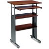 Forget slouching and sitting nearly motionless all day, increase your circulation and improve your posture by working at this Mobile 31.5-inch Stand Up Computer Desk in Black. Featuring a sturdy silver frame with a powder coat paint finish, this mobile desk has a black laminate wood surface thats ideal for performing office tasks. It also comes fitted with locking casters so its easy to move from room to room.