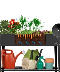 Mobile Black Metal Garden Potting Bench with Push Handle Wheels is made from solid galvanized steel, durable and have a long lifespan. If you love to garden and plant flowers, vegetables, and herbs, this is the perfect potting bench for you. With a lower shelf, you can store your gardening tool or display more pots in your outdoor living space. What’s more, it designs simple and modern, which will a great decoration for your garden. It features two handles and two wheels for easy movement, which brings a lot of conveniences.