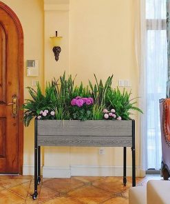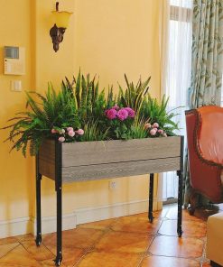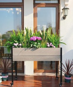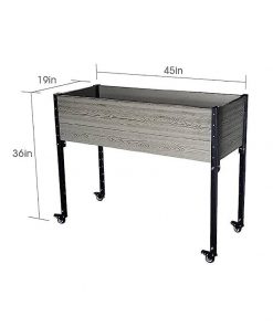 This Mobile Elevated Gray/Black Raised Garden Planter Bed w/ Wheels beautifies limited space with the ideal gardening height, creating a convenient gardening experience without bending over and protecting plants from being reached by pests. Designed with the height of 36 inches. Comes with 4 caster wheels, this elevated planter can be moved to fit your garden layout design and make sure that your plants get the right amount sun and shade.