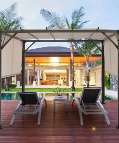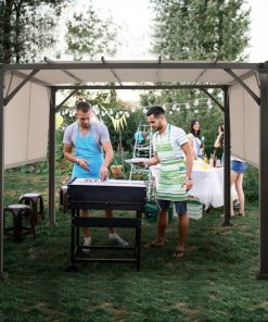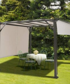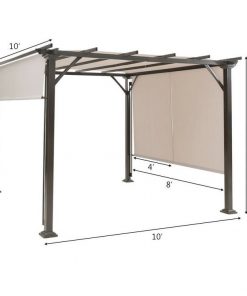 This Modern 10 x 10 Ft Heavy Duty Metal Frame Pergola Gazebo with Beige Canopy is made of polyester fabric with PU coating, which has good performance in sun resistance and flame retardant. Besides, constructed by a reinforced steel frame with a powder-coated finish, the gazebo is rustproof and durable for long term use. More, the reinforced structure and 8 anchors ensure that it remains stable in windy conditions. Most importantly, you can flexibly adjust the retractable canopy on both sides according to your own preferences. The pergola gazebo in a stylish design matches different outdoor styles. You can use it for BBQs, parties, picnics with your family and friends. The pergola will give you the best shading experience! If you are looking for a gazebo-like that, do not hesitate to buy it!
