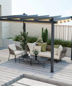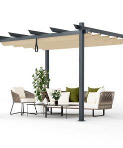 This Modern 10 x 12 Ft Outdoor Sturdy Pergola Gazebo with Retractable Beige Canopy is crafted from a powder coated aluminum frame, which is firmly connected by multiple fixing screws, the retractable pergola is extremely strong and rust resistant. And the 4 wide 7″ x 7″ metal feet with pre-drilled holes can help the pergola stand stably on different ground surfaces. (Please reserve 9.8″ x 9.8″ space for installing each metal feet.) The canopy of the pergola can be easily retracted by a rope loop or unfolded in any position, allowing you to enjoy shade on a sunny day or stargaze at night. In addition, the rope loop and hooks form a locking system that prevents the canopy from being blown from one side to the other. Made of premium yarn-dyed fabric, the sun shelter can effectively protect you from sunlight and light rains. Moreover, the premium fabric is fade-resistant and tear-resistant, which can be used for a long time. With a simple and generous design, the outdoor pergola can easily fit into various occasions and will be a beautiful sight for your garden, poolside, patio and deck. Besides, the trellis at the top makes it suitable as a grape trellis, which is ideal for climbing plants to grow. The 12′ x 10′ x 8′ patio pergola provides an extra large area for picnics, barbecues, small gatherings or commercial events. And the assembly is not very difficult with detailed instructions and assembly video.