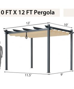 - Modern 10 x 12 Ft Outdoor Sturdy Pergola Gazebo with Retractable Beige Canopy