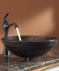 Add a touch of color to your bathroom with this Modern 16.5 inch Round Copper Color Glass Vessel Sink. Handcrafted from tempered glass, this modern bathroom sink coordinates with a variety of décor styles. A freestanding basin design creates a dramatic look with contemporary appeal. Vessel installation offers an easy top mount option for all your stylish bathroom ideas. The textured surface of the sink is dynamic and requires minimal maintenance to keep clean. Pair this sink with any single hole vessel faucet for a beautifully coordinated look.