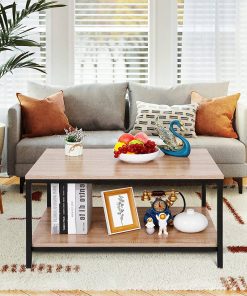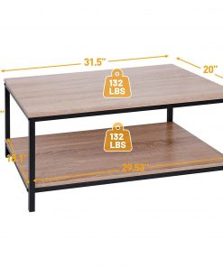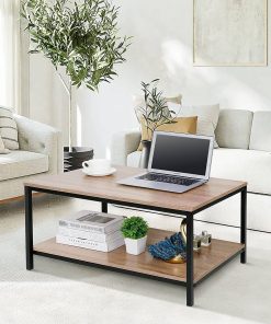 Are you still looking for a stylish yet affordable coffee table for your living room? Then this Modern 2-Tier Metal Wooden Coffee Table in Natural Wood Finish is for you. Our coffee table is sturdy enough to hold up to 132 pounds on top. This handsome table is equipped with a spacious table top, providing you with space to display plants, photo albums, coasters and coffee. The open shelf at the bottom provides additional storage space and helps keep the room clean. This little coffee table is very easy to assemble and is ideal for small spaces or for someone who doesn’t want to overwork the available space. It’s the perfect size for small apartment or small living room.