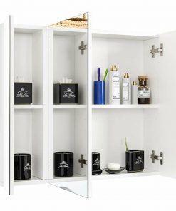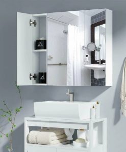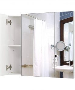 The Modern 3-Door Wall Mounted Medicine Cabinet Bathroom Mirror Cupboard makes your bathroom decent and elegant.Composed of HMD board, mirror, stainless steel to ensure a long-lasting and durable cabinet. 27.6″ wide crystal clear mirror can make your bathroom looks brighter and more spacious. Your best choice!