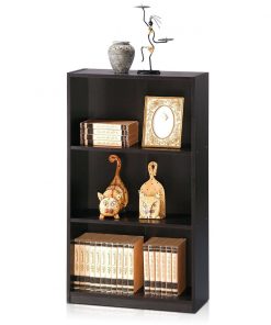 This Modern 3-Shelf Bookcase in Espresso Wood Finish is designed for casual and stylish look. The materials comply with e1 grade particle board for furniture. There is no foul smell of chemicals, durable and it is the most stable particleboard used to make furniture. Care instructions: wipe clean with clean damped cloth. Avoid using harsh chemicals.