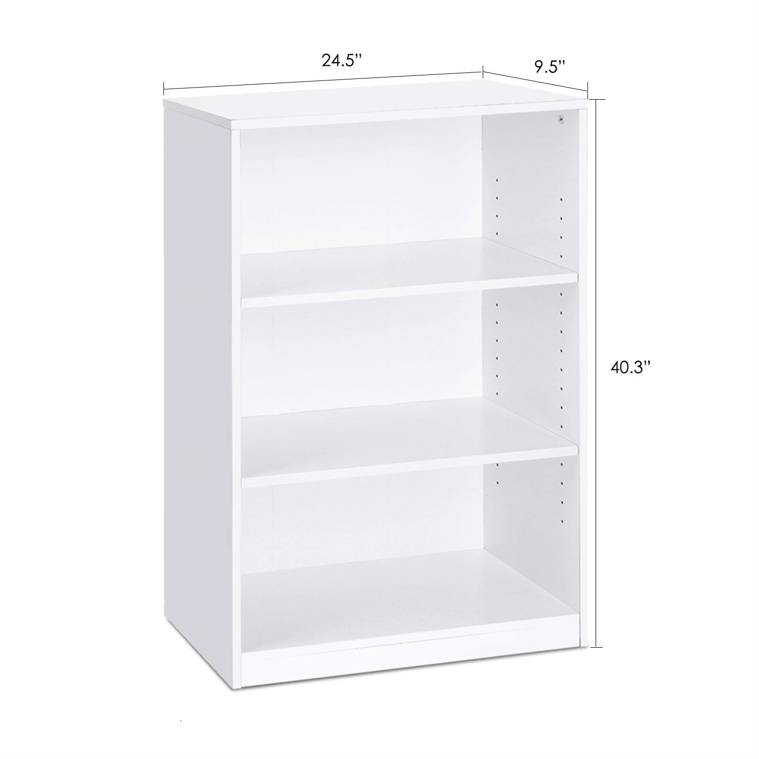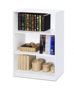 Modern 3-Shelf Bookcase in White Wood Finish