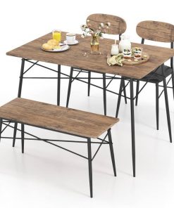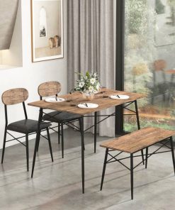 - Modern 4-Piece Dining Set with Wood Top Table 2 Chairs and Bench
