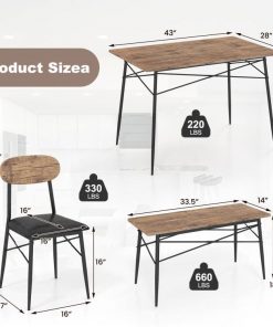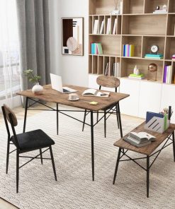 This Modern 4-Piece Dining Set with Wood Top Table 2 Chairs and Bench for 4 includes a 43″x 27.5″x 30″(L x W x H)rectangular dining table, 2 chairs and 1 bench, which is perfect for a formal dinner party, a casual family meal. Or you can use the table set to create a workspace or sturdy area. Featuring foam-filled cushions, the kitchen table set ensures a relaxing seating experience, while the slightly curved backrest offering the perfect support. Whether you’re sitting down for a quick breakfast or a leisurely dinner, the chairs will ensure a pleasant dining experience. The metal legs of the 4 piece dinette set are reinforced with x-shaped crossbars to ensure excellent load-bearing and stability, allowing 4 adults to sit without wobbling. Besides, the MDF with veneer is solid and easy to maintain. The chairs and bench can be easily stored under the table when not in use, optimizing your space when the meal is finished. Thanks to the anti-slip pads, you don’t have to worry about scratching your floor when you move the chairs and bench. With wood grain and minimalist design, our dining table set is suitable for a wide range of occasions. Its functionality and timeless appeal make it a must-have furniture for your kitchen, living room and dining room.
