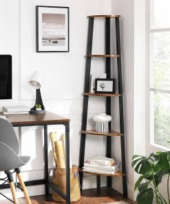With an attractive vintage appearance and functional design, this Modern 4-Shelf Brown Black Corner Shelving Unit Slim Bookcase is suitable for any room and is always in full play. Place it in the living room Fill the shelves with eye-catching knick-knacks, and it will definitely become a centerpiece of your home. Place it in the study or office Keep your books, documents and etc. in order within reach. Place it on the balcony Display your plants and fish bowls under the sun while creating a peaceful corner.