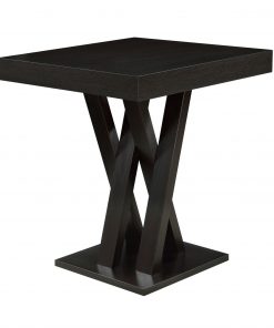 Add a classic touch to your decor with this Modern 40-inch High Square Dining Table in Dark Cappuccino Finish. The dining table is made from high quality material, which adds to its quality and style. The small size of the Dining Table is a perfect choice for breakfast nooks or patio. The cappuccino finish of the table blends with most room decors. The pedestal base provides enough leg room and lets you enjoy your meals with comfort. The bold criss and cross supports provide a firm support to the table and looks stylish. The table will complete the look of your decor when paired with modern bar stools.