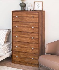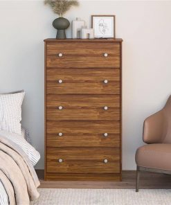 - Give your bedroom or guest room additional storage with a space-saving Tall 5 Drawer Dresser