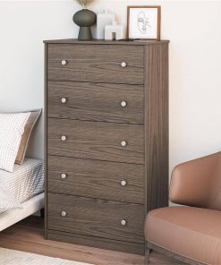 - Modern 5-Drawer Bedroom Chest in Rustic Grey Brown Wood Finish