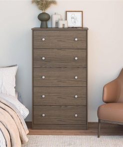 - Give your bedroom or guest room additional storage with a space-saving Tall 5 Drawer Dresser